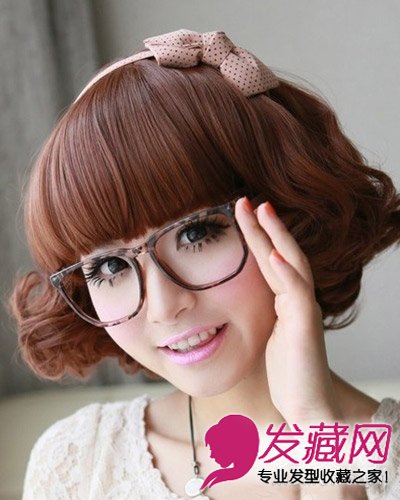 短发的韩式蛋卷头俏皮又清爽,很可爱哦,看,过耳的短发,俏皮感的蛋卷,有点凌乱,蜜糖棕色很有芭比娃娃feel,搭上一副眼镜,再甜美一下,很赞哦。