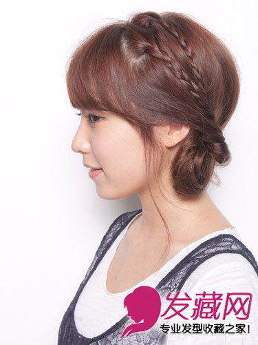 侧面效果:在辫子的点缀下,侧边扎发蓬松饱满,女人味十足。