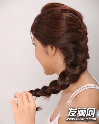 step 2:从头顶开始编发采用3+2的编发将全部头发编成辫子,固定好。