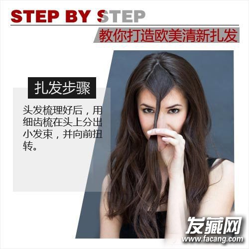 step 1:头发梳理好后,用细齿梳在头上分出小发束,并向前扭转。