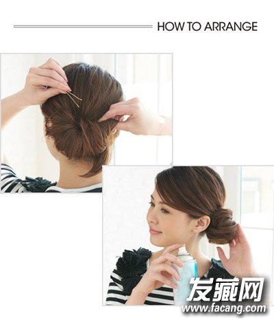 step4:将发尾缠绕成花苞头后用发夹固定。