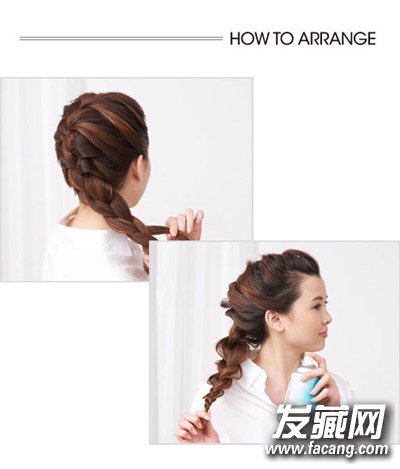 step2:如图从头顶开始将头发一路编成蓬松的发辫。