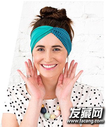这种高髻发型适用用于湿发又赶时间的MM,它能够让你在短时间内把自己打理得清清爽爽地出门。再加上发带的变化装饰,甜美的或御姐的、不同类型的MM都可以尝试哦。如果是在晚上洗头的话,也可以用其来打造蓬松卷发哦。