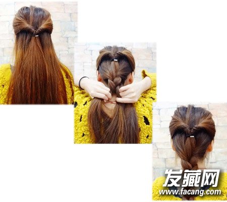 3、完成后把下面的头发编起来,普通的3股辫哦,是女孩子都会的哈。