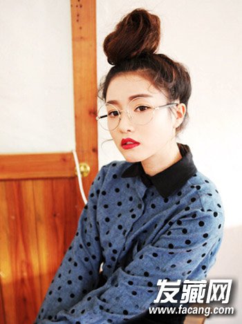 蓬松的发型设计与这款花苞头搭配起来,而且头顶的花苞头显得十分有蓬松感,搭配上眼镜勾勒出无比的时尚感来,而且清爽的露额发型显得十分抢眼。