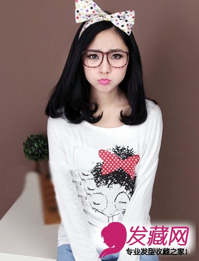 黑色直发梨花头,光滑柔顺显清纯,搭配波点的发带发箍个性抢眼,再配上色豹纹的眼镜框更加个性俏皮。适合少女系的你哦!