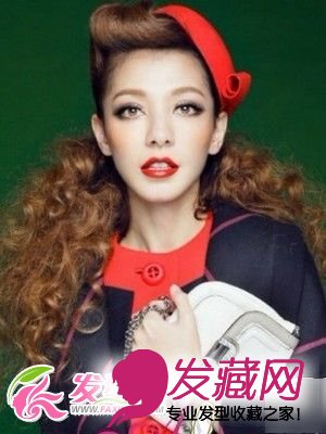 红色的发饰,红色的嘴唇,立刻吸引了我们的眼球,加上夸张的麦穗卷发,宛若一个童话中的洋娃娃一般。刘海向上翻卷,高高耸起在额头上,没有丝毫的毛躁感,与剩余的麦穗卷发做对比,可爱十足,抢眼的发色,搭上本季的潮流单品,时尚而亮眼。