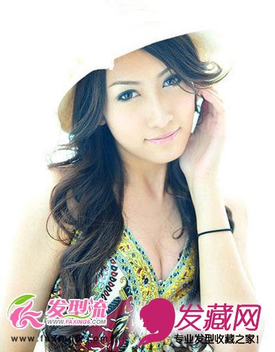 这款发型给人一种优雅时尚的感觉,白色帽子微微遮住中分的刘海,左边的刘海发梢轻盈外翘若隐若现掩盖了眉尾与眼角,让人感觉有些女性的、含蓄与羞涩,两边发丝内卷外翘拨到胸前,整个发型配合着少数民族特色的裙子,一种田园式的风格瞬间产生了!