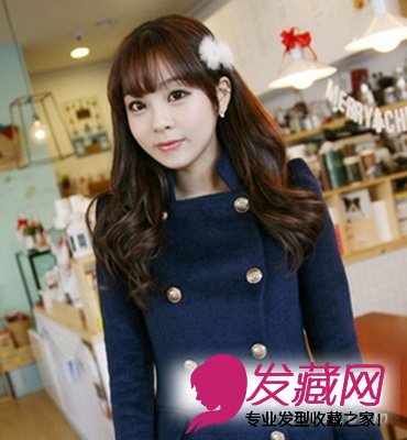 丰盈光泽的质感长卷发,自然的小波浪发丝,令形象显优雅气质,圆形的打薄刘海,配搭耳边的白色发饰,成熟的厚重中注入年轻俏皮。