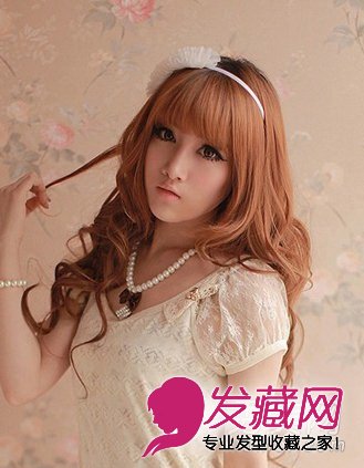 魅力长卷发演绎性感浪漫的气质,从下巴处开始打造大波浪卷发效果,弥漫着浓郁的浪漫气息,棕色的染发颜色让这款女生发型很是洋气,搭配精美发箍,时尚甜美。