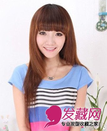 清纯优雅的直发发型设计,搭配厚重感的齐刘海发型,不仅衬托出女生大而灵气的眼睛,还轻松打造出一张精致的瓜子脸造型,将直发发型打造出层次感的效果,更是洋溢着青春时尚的气息。