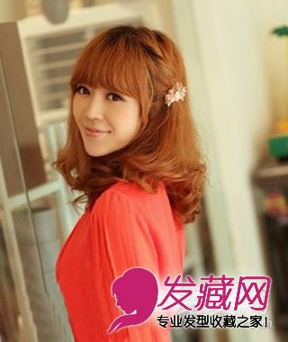 这款齐刘海卷发搭配红色的着装,减龄又甜美。也修饰出了女生完美的脸部线条,棕栗色的染发颜色,衬托出了女生白皙透亮的肌肤,在耳际的发丝融入麻花辫发型扎法,整个发型图片 尽显时尚靓丽的气息。