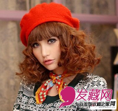 中短发卷发发型,齐肩中短发烫成螺旋式大卷,变得更加精致美丽,营造出饱满丰盈感,加上厚重齐刘海设计,衬托出小巧脸蛋和精致五官,特别是那双灵动的大眼睛,非常吸引人。