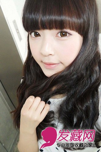 齐刘海的长卷发,绝对是大脸适合的发型,蓬松内卷的齐刘海,有很好的修颜作用。