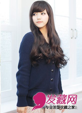 将厚重的侧刘海搭配上长卷发造型后,显得可爱十足。可以搭配淑女风或者甜美风的衣服,出去约会或者相亲都很合适。