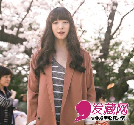 齐刘海的长卷发很适合大脸的MM们哦,长卷发可以在视觉上拉长脸的比例,从而达到瘦脸的效果