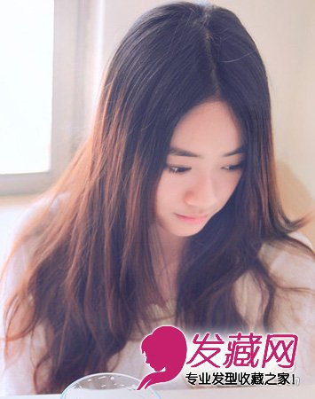 一款比较清新的中分长卷发,棕色的染发只从中间开始,显的特别的时髦。两侧的头发可以达到很好的瘦脸效果。