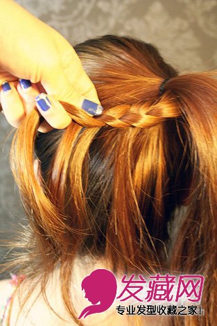 接着取出马尾最左侧的头发,开始编麻花辫,每编一节,留下一股头发,就是不要将全部头发编入进去