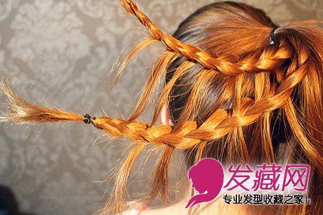 接着麻花辫旁边再取出三股头发开始编,这次的编法要注意了,每编一节,左手要将第一条辫子留下的头发编入进去,右手要继续留下一股头发出来