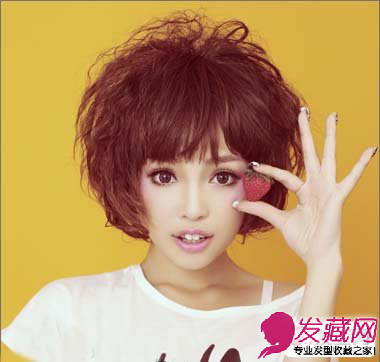 这款蓬松造型的短发非常个性,打造出自然的凌乱感是它最大的特点,很有造型感。精致的小卷发尽显甜美俏皮,红棕色的染发增添了不少时尚气息,画上大眼妆,真是太迷人了。