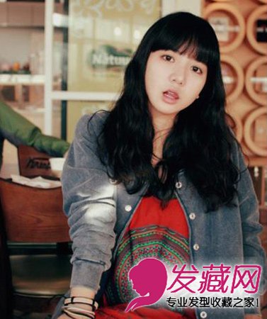 齐刘海的中卷发造型,模特本身也是大脸妹一枚,配上这一款齐刘海的中卷发造型,是不是瞬间就缩小了脸庞了呢?