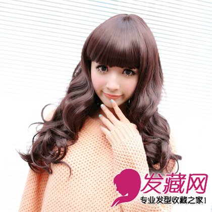 长卷发蓬松包脸 ,齐刘海造型很修饰脸型,显得人特别甜美,养眼的蓬松效果,很时尚