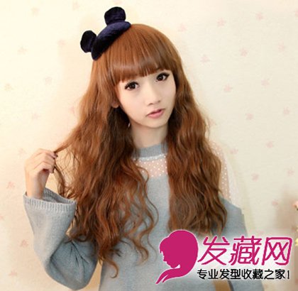 玉米须元素搭配自然的齐刘海,营造出小脸的感觉,更显出清新甜美的美好形象。