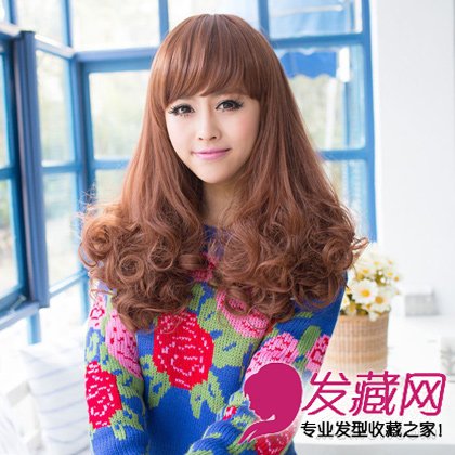 焦糖色的发色,很甜美。很时尚。底下做蛋卷处理,符合时尚潮流。