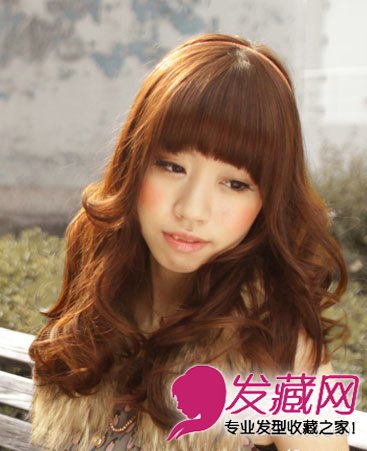 齐刘海栗子色长卷发