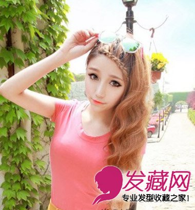 经过卷发的处理使刘海编发呈现前凸的弧度,可爱甜美。稍显凌乱的大波浪卷发突显女性的柔美,给人恬静女生的感觉。