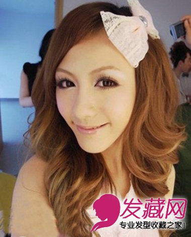 这款很有个性的卷发采用外翻方式打造螺旋式卷发,侧分刘海露出额头,使脸型变得更加修长,搭配一个蝴蝶结发夹,性感优雅中带点甜美可爱。