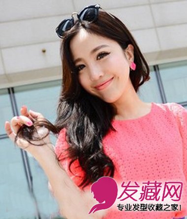 中分发型轻松修颜,打造精致迷人小脸。一侧挽在耳后,头发捋到一边,超显女人味哦!发尾微微卷发很甜美,头上一个墨镜时尚感爆棚。