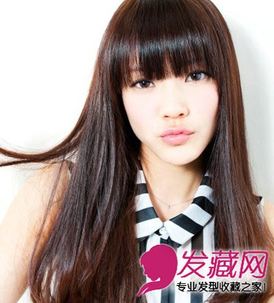 离子烫直发发型,及眼的刘海可以将高额头遮盖住,而离子烫的长直发很服帖,突显出个人的气质。这款发型不止适合额头高的MM,自然卷的MM也很适合!