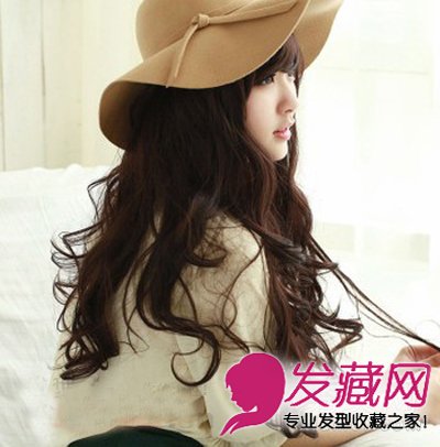 厚重蓬松的大波浪卷发很好的将女生的脸型修饰出来,凌乱的烫发卷发,更显发型的特色。搭配一顶自己喜欢的帽子,甜美极了。