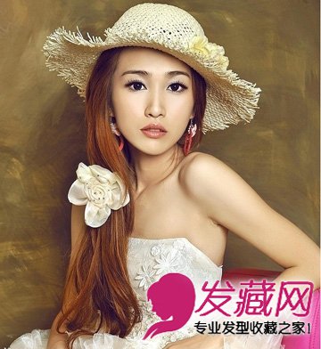 这款发型看上去是不是非常迷人,侧放的卷发加上一顶宽沿的帽子不但很好的修饰了女生圆脸的缺陷,也凸显出女生精致的五官。
