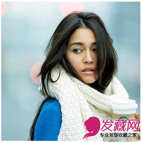 厚重的白色围巾戴在脖子上难免盖住头发,干脆将长卷发与围巾完美搭配,利用围巾的层次感设计打造出蓬松自然的长卷发。