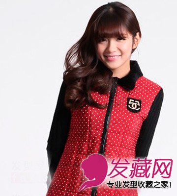 甜美的齐刘海修颜瘦脸,蓬松的长卷发浪漫妩媚,将全部卷发搭在一侧肩上,看上去更加甜美浪漫。