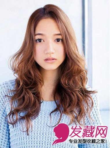 发型点评:长脸MM更适合这款长卷发,中分长刘海巧妙的遮盖住脸颊的肉肉,蓬松华丽的大波浪烫发无形中拉伸脸部线条,修饰长脸变V脸。