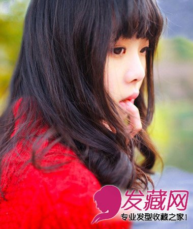 可爱萌软妹纸最爱的齐刘海长发烫发,万年修颜必备的齐刘海,蜷曲的发卷自然甜美,呆萌可爱。
