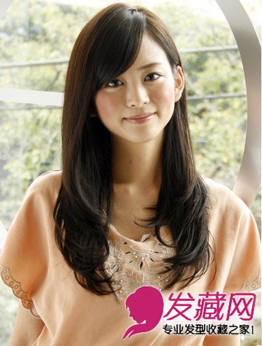 发型点评:一九分长刘海沿着眉眼倾斜下来,遮盖近三分之二的额头,立刻精致显瘦。