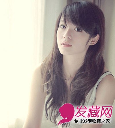发型五,黑色长卷发,这款卷发自然清新,比较厚实的斜刘海,并将头发别于耳后,露出了整个脸部轮廓,再加上淡雅的着装,更是有一种淑女的可爱范。