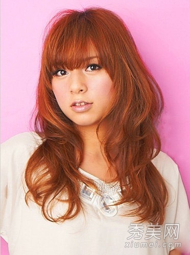 齐刘海加上少许的碎发造型衬托出知性美感,加上蓬蓬的大卷发制造出浪漫的弧度,将发型变得更加修饰脸型。