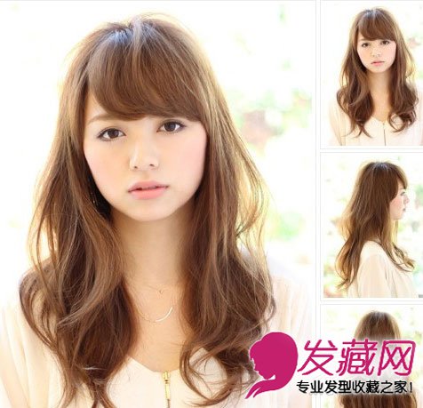 斜分的刘海能够塑造出乖乖女和气质女的形象,加上蓬松的不规则大卷发能够给造型加分,喜欢的MM不要错过。