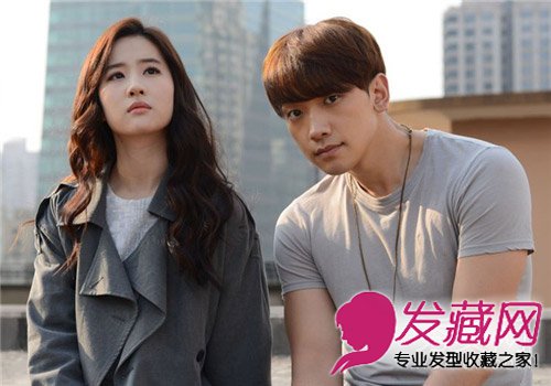 棕色的长发在阳光下熠熠生辉,长卷发披散在胸前,吹高的刘海挽向一边,遥望远方的女神非常大气,旁边的Rain同款发色,十分相配。