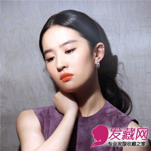 中分的造型能够拉长脸型,一头黑发看上去发质非常出众,很能凸显气质,而一丝不乱的发根处,与随意挽起长发的发梢处有着强烈的对比,慵懒而随意,非常漂亮!