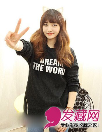 略显厚重感的空气感刘海造型,但因发梢的蓬松造型与明亮的染发更多的是凸显女生的可爱甜美范,很适合秋季的一款造型,而且还有修颜效果哦。