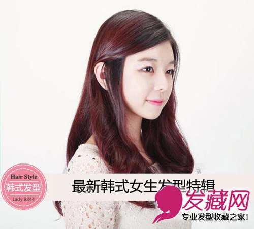 发型点评:这款韩式女生发型更适合轻熟女气质的MM,酒红色发色衬托出如雪的白色肌肤,厚重的卷发优雅妩媚。