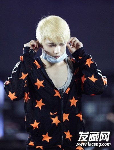 金在中的眼睛很漂亮,画上妆容之后更是雌雄莫辨,但丝毫不显娘炮,这款金色的长刘海短发显得他更白了。