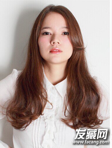 棕色的染发颜色衬托出发色的秀丽感,加上中分的刘海修饰了脸型,显得很有造型感。