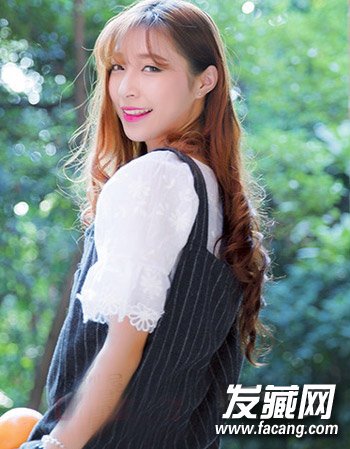 有如洋娃娃一般的长发,甜美的空气刘海加上气质的螺旋卷发再搭配上时尚的橘黄色发色,不仅自然显气质而且颇为清新。